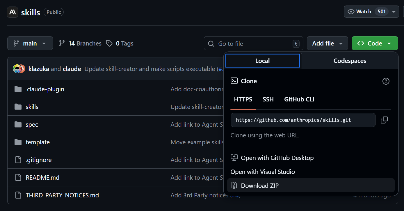 1. 접속: Anthropic Skills GitHub 에 접속합니다.