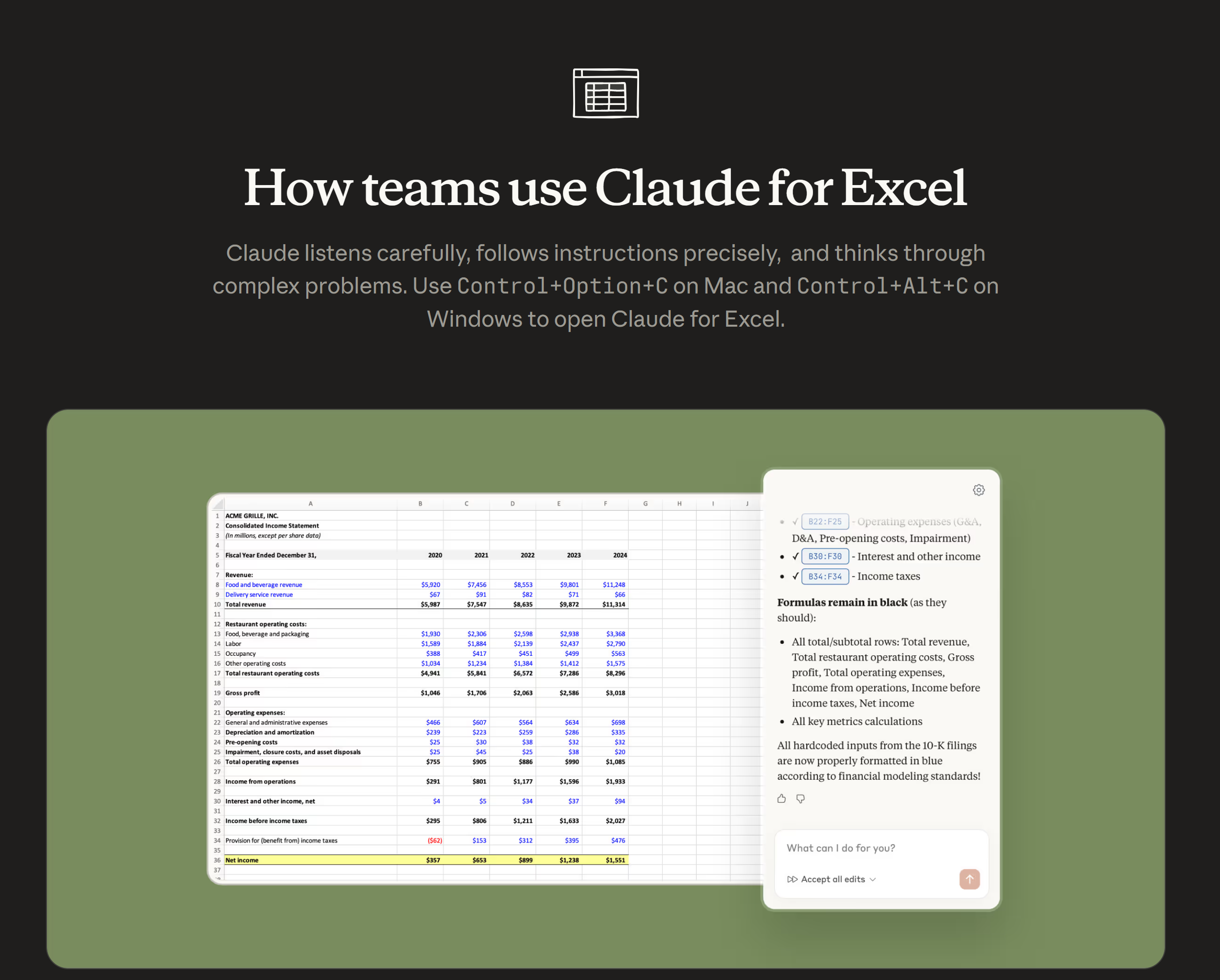 지금까지 나온 거의 모든 엑셀 관련 AI 에이전트를 직접 사용해봤지만, 회계, 재무 실무에서 가장 뛰어난 퍼포먼스를 보여준 것은 결국 클로드 엑셀(Claude for Excel) 이었습니다.